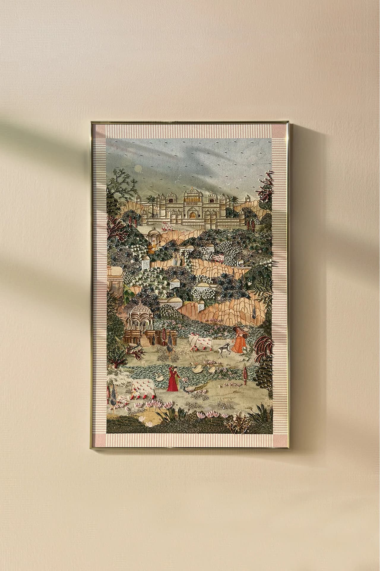 "If heaven were a place on earth" - Discover the allure of "Shangri-La!" - an exquisite piece of embroidered Wall Art|Wall Art that transports you to a mythical paradise. This stunning Indian Wall Art|Wall Art captures the essence of an idyllic utopia, perfect for those seeking to elevate their wall decor.